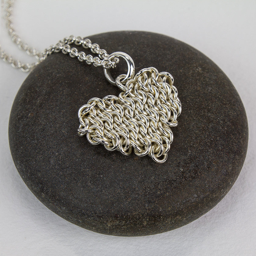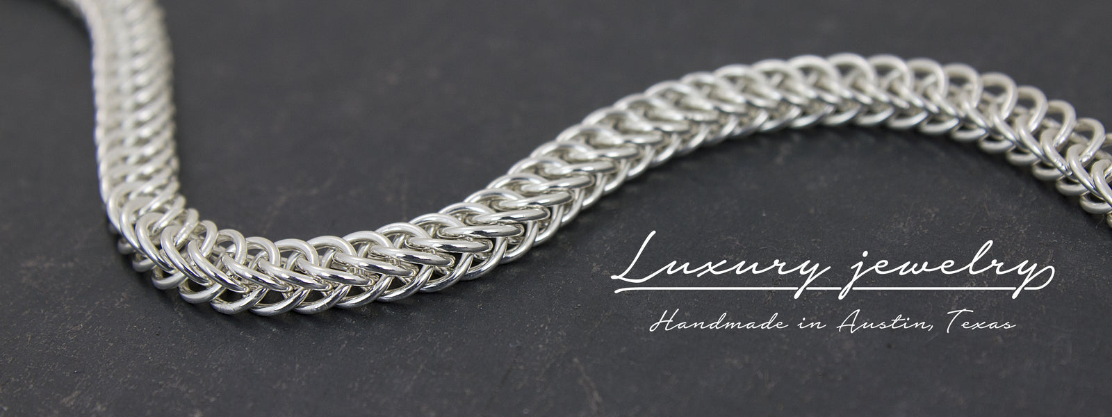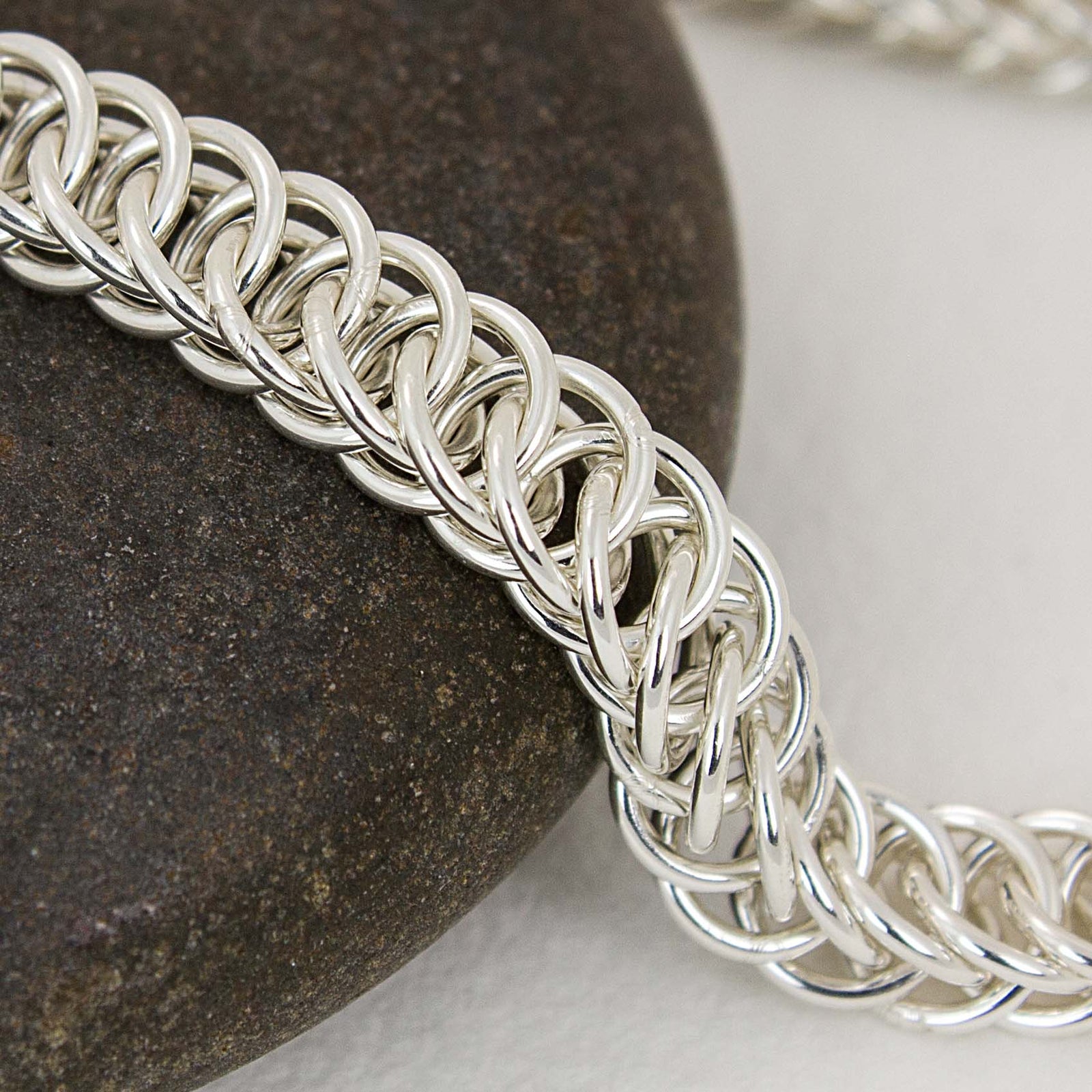 This fused chainmaille Star Flower is centered on a thin strand of silver, with a hammered finish that creates subtle yet mesmerizing facets. Hammering the band gives it strength and a unique texture.