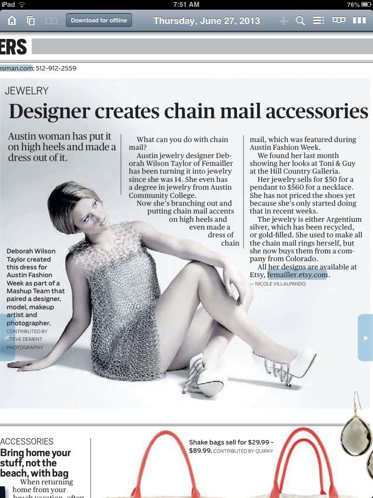 Chery Bemis of Fashionably Austin wrote a wonderful piece about my participation in JTV's Rock Star Designer competition. Check it out here!